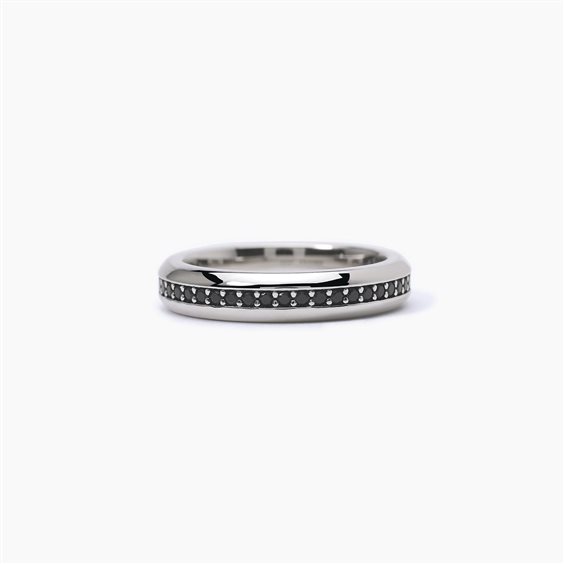 Anello tipo fedina in argento 925 rodiato con zirconi neri. Possibilità di incisione interna. Misura 27. IN CASO DI INCISIONE NON SARA'POSSIBILE IL RESO.