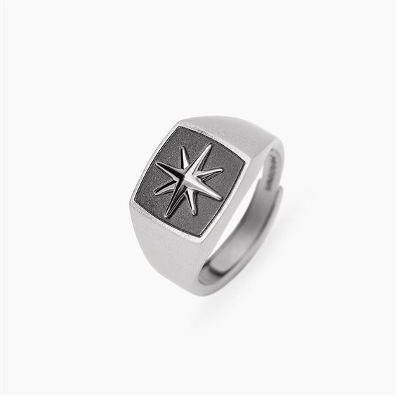 Anello Chevalier in argento 925 satinato. Rosa dei venti in testa. Misura regolabile da 19 a 27.