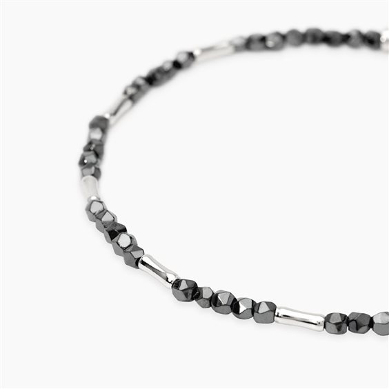 Bracciale in argento 925 rodiato ed ematite. Chiusura a moschettone. Misura regolabile da cm 18,5 a cm 20,5.