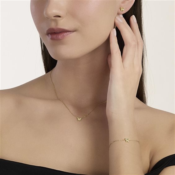 Girocollo in argento 925 dorato. Catena maglia forzatina, farfalla centrale mm 5. Misura regolabile da cm 40 a cm 45.