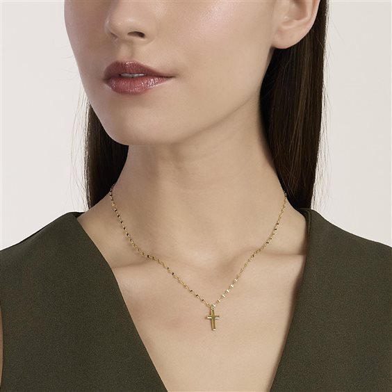 Girocollo in argento 925 placcato oro giallo 18Kt. Catena maglia diamantata, crocifisso pendente cm 1,5. Misura regolabile da cm 40 a cm 45.