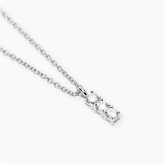 Girocollo in argento 925 rodiato e diamanti lab-grown. Catena maglia rolò. 3 diamanti lab-grown, totale carati 0,18, colore F, purezza Vs. Misura regolabile da cm 39 a cm 43.