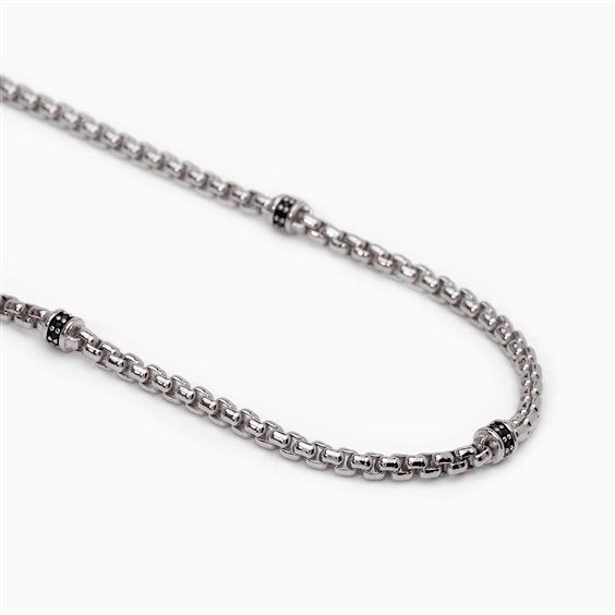 Collana in argento 925/°°° rodiato e zirconi neri. Catena veneziana. Misura cm 50.