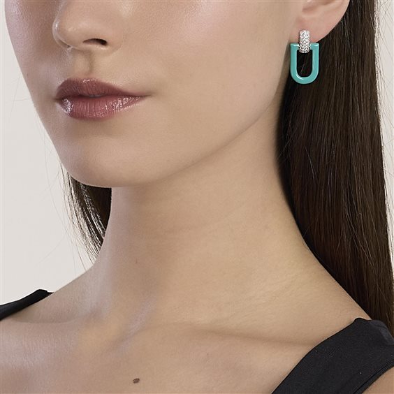Orecchini pendenti in argento 925, zirconi e ottone smaltato turchese. Pendente cm 2,5.