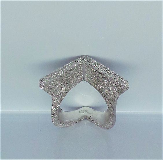 Anello in argento 925 rodiato. Lavorazione sabbiata martellata. Misura 15.