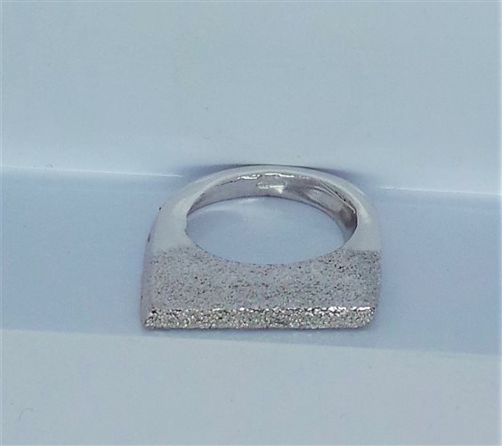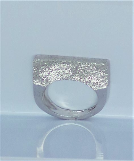 Anello in argento 925 rodiato. Lavorazione sabbiata martellata. Misura 15.